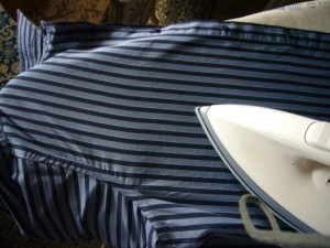 3. Le repassage ne doit prendre que quelques minutes. Le mieux est d’acquérir une méthode et de s’en tenir à cette méthode, par ex col, manche, épaules, pans avant et pans arrière. Ça ira de mieux en mieux avec l’habitude.